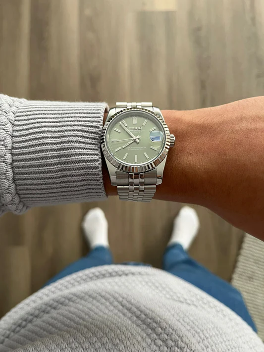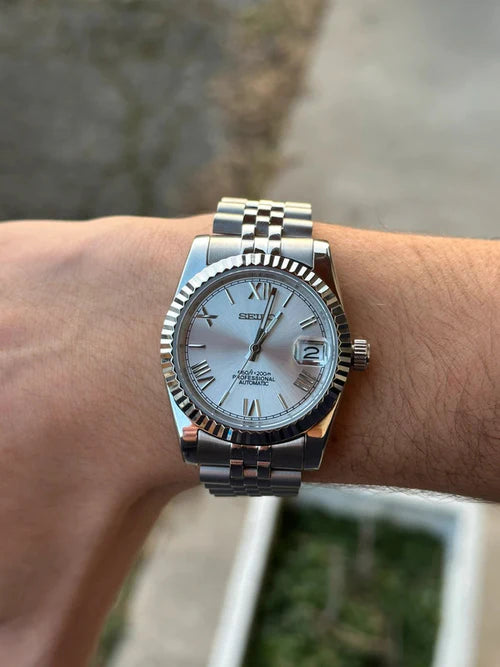 A symbol of success, confidence, and recognition. Inspired by the iconic Nautilus design, this authentic Seiko modified watch ensures you’re seen. Carefully handcrafted in Japan and the United States. Featuring the Seiko NH38 automatic movement and sapphire crystal